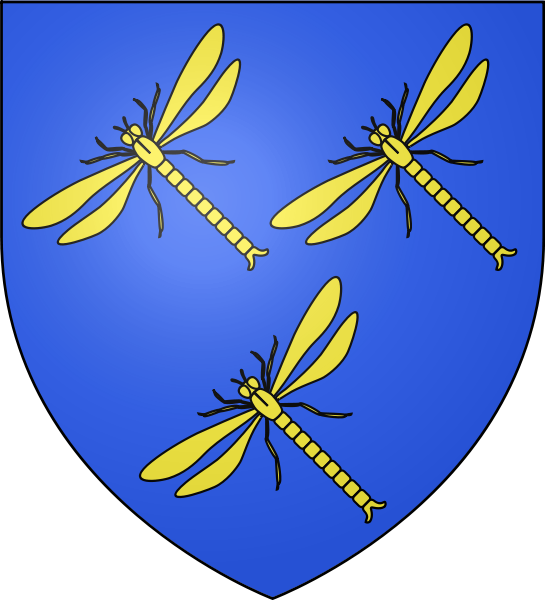 D'azur aux trois demoiselles d'or posées en bande et ordonnées 2 et 1